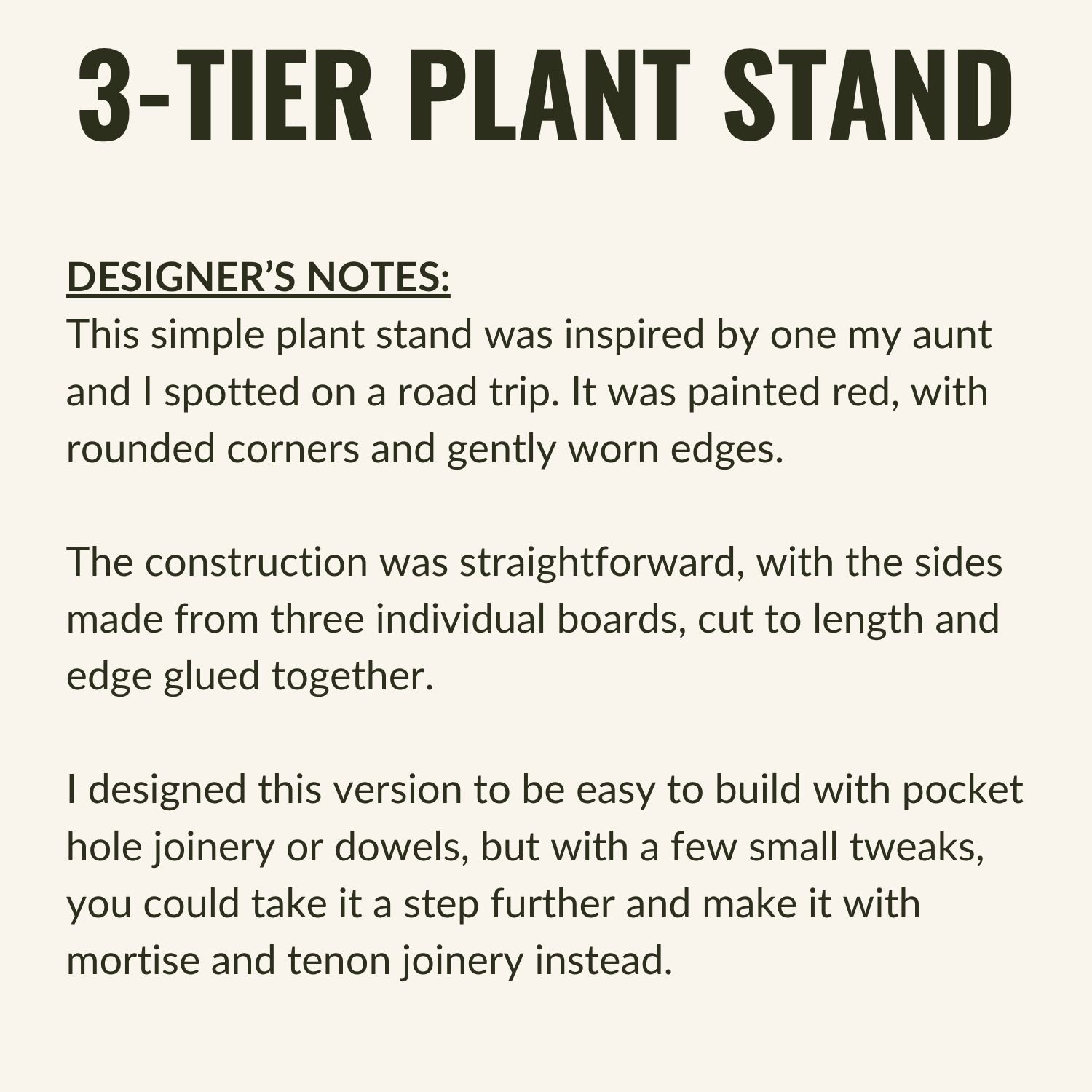 - Making it your way (adjusting dimensions, using different joinery techniques)